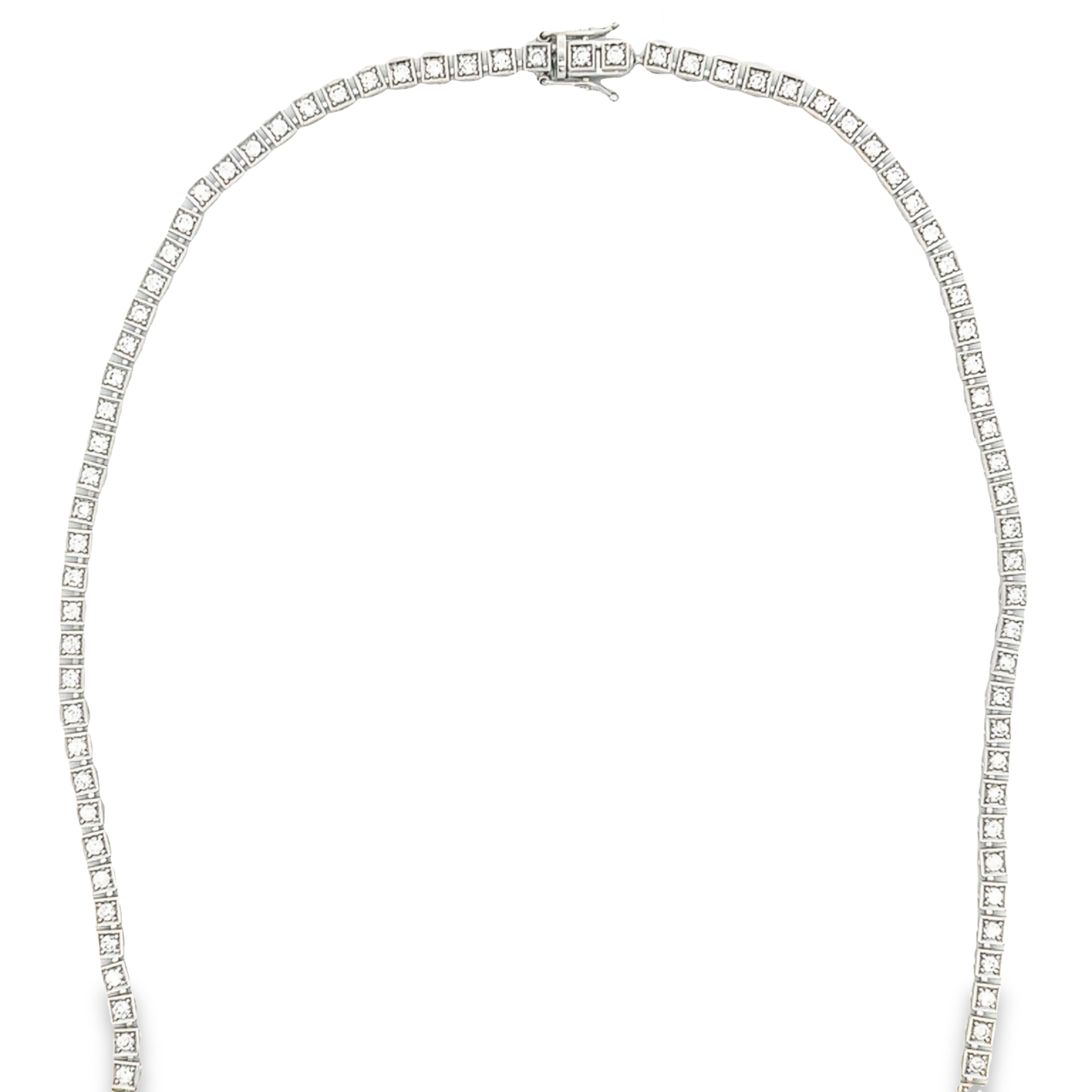 11.79ct 18k white gold diamond necklace. Diamonds run around the whole necklace. Necklace measures 36" in length.